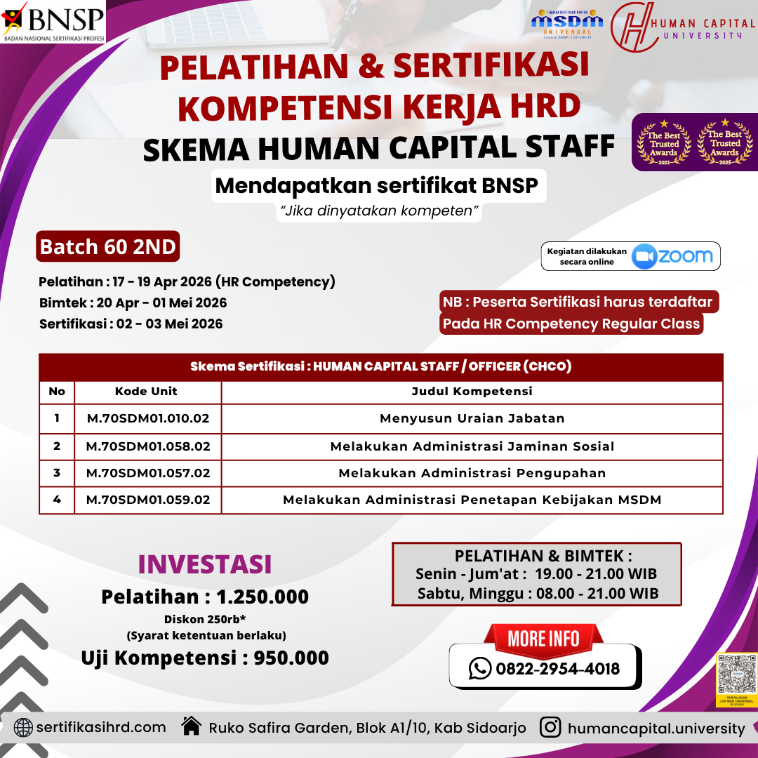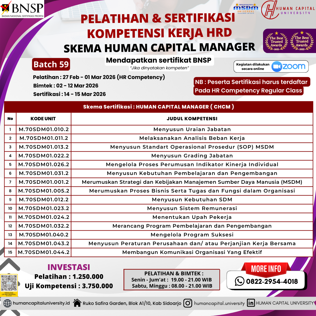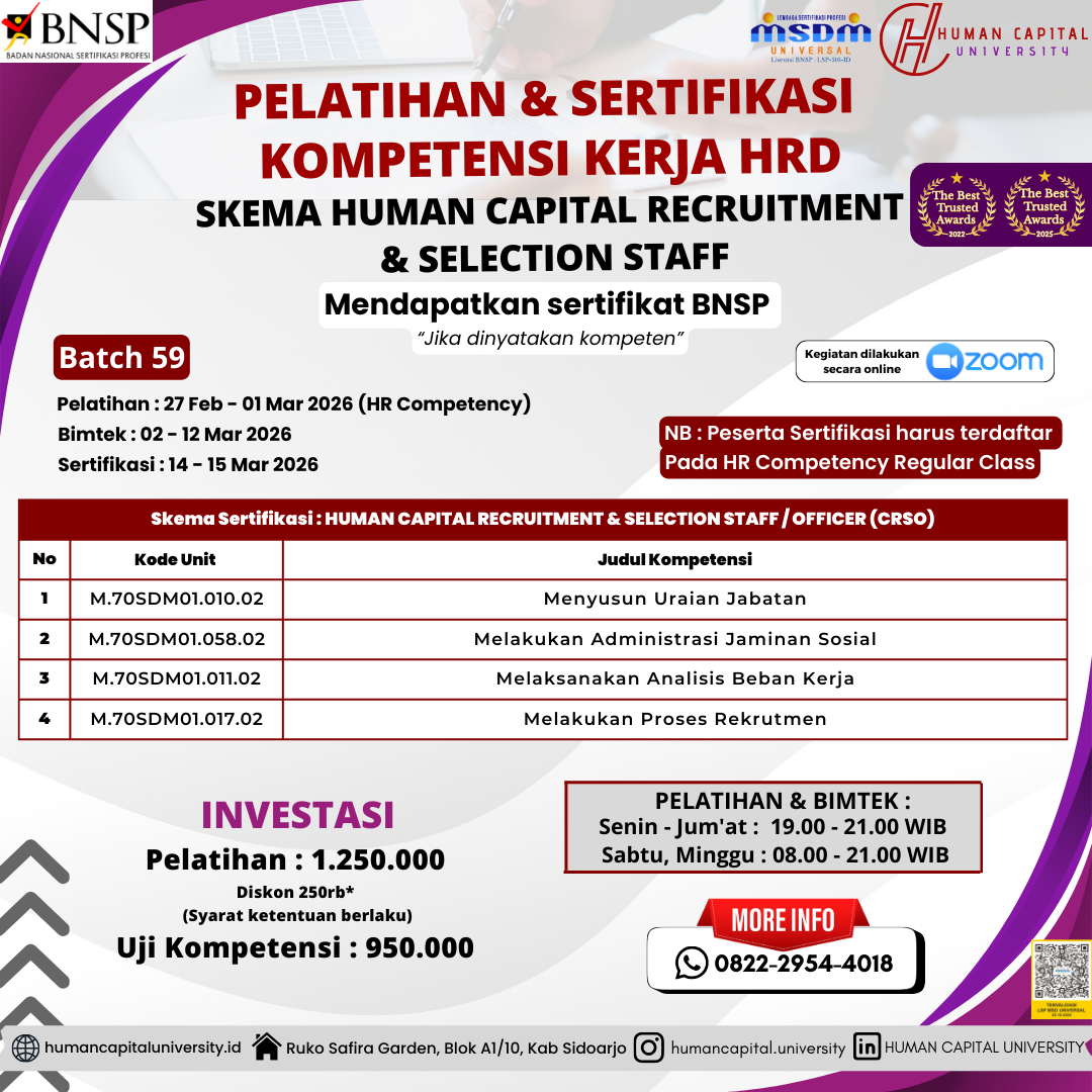 Kenapa memilih sertifikasi kompetensi HRD di Human Capital University?