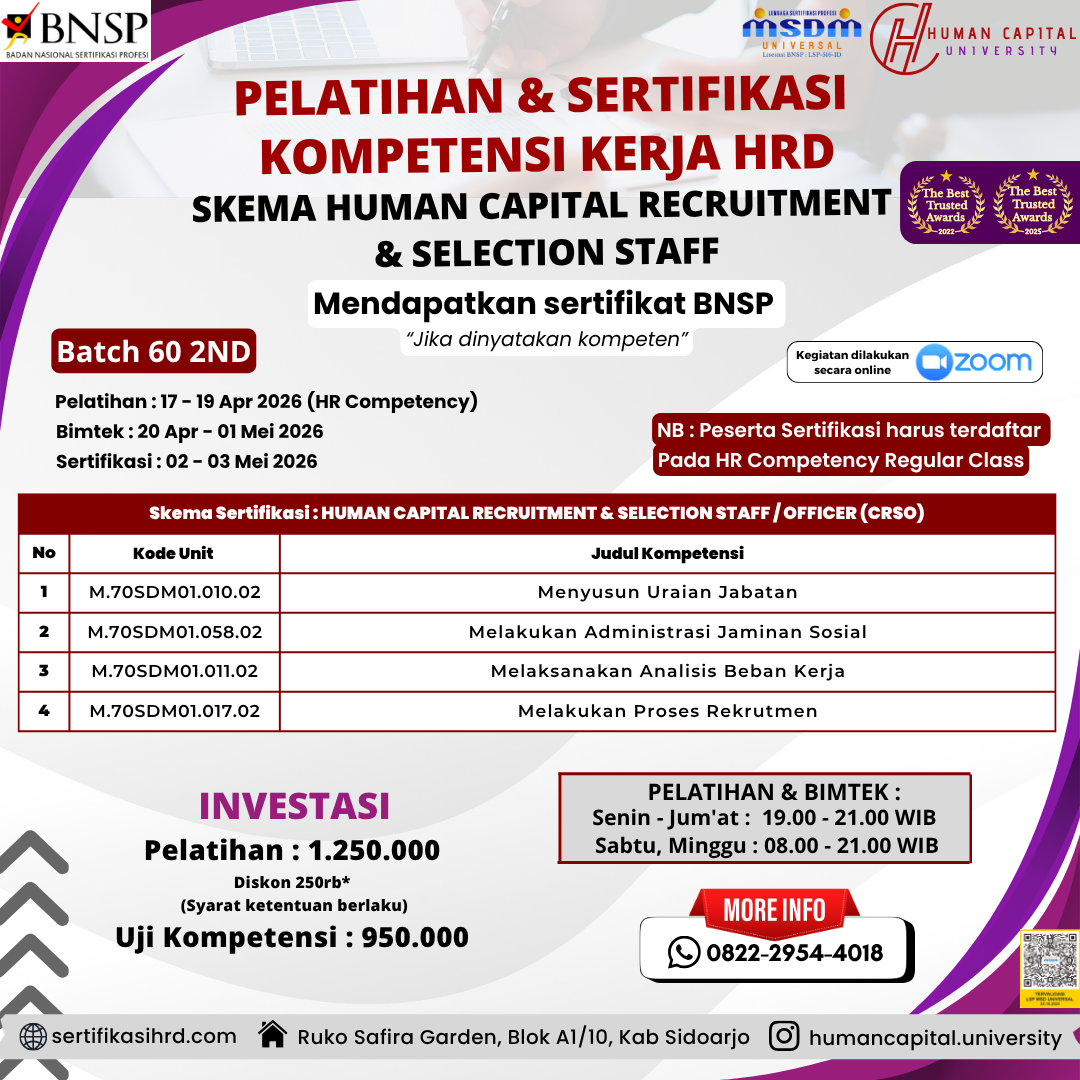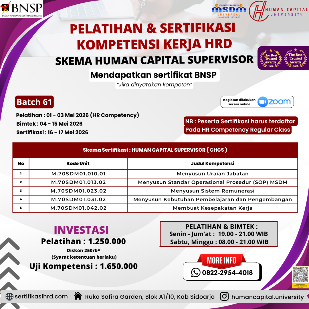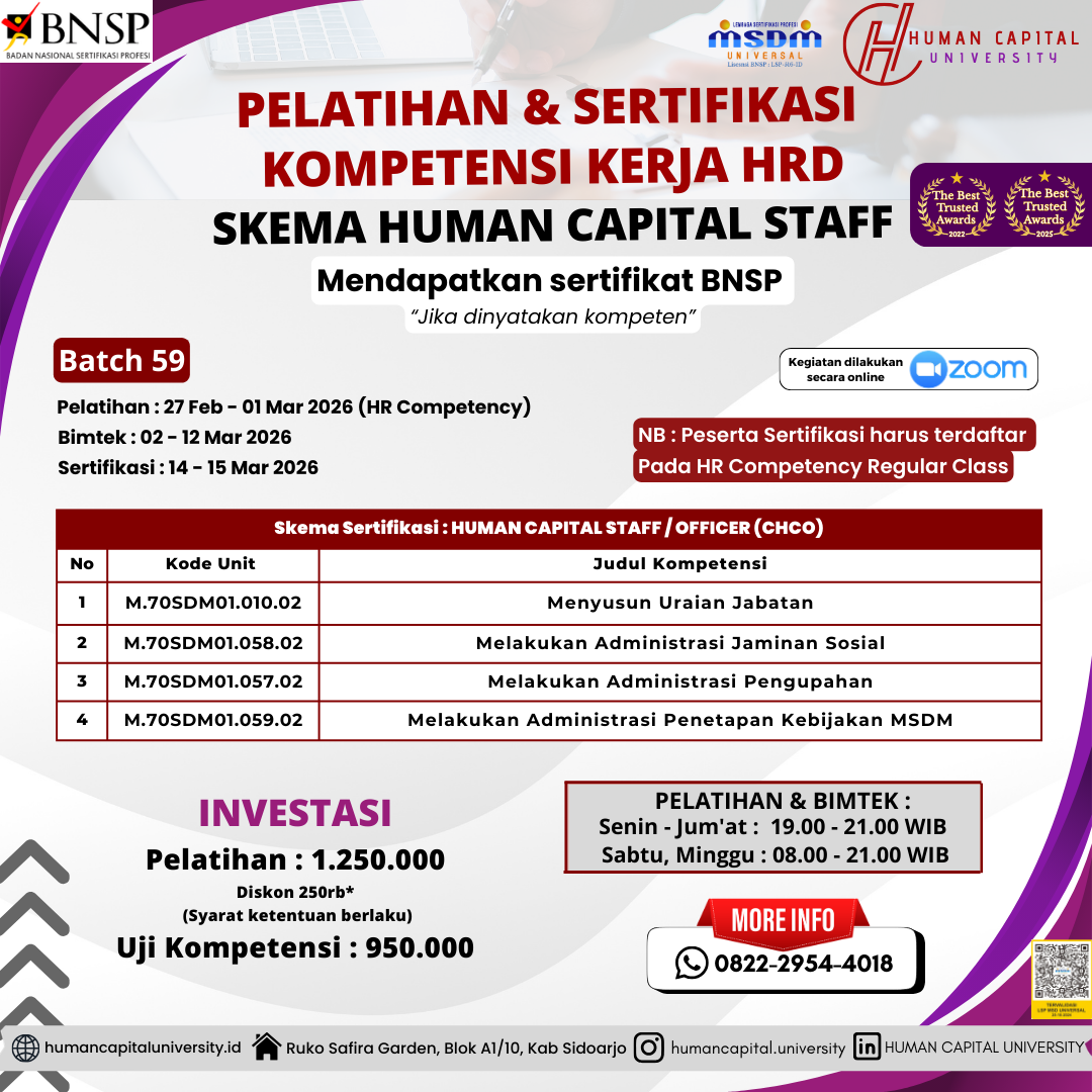 Kenapa memilih sertifikasi kompetensi HRD di Human Capital University?